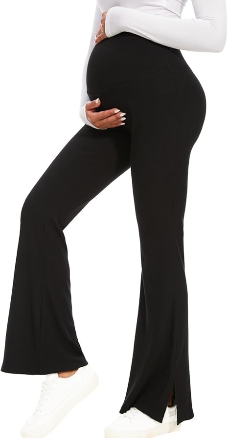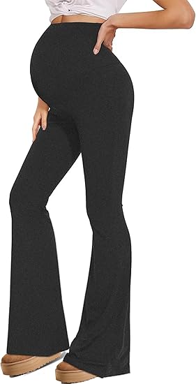 Buttery Soft Maternity Flare Leggings Over The Belly, Before During After High Waisted Pregnancy Yoga-Leggings