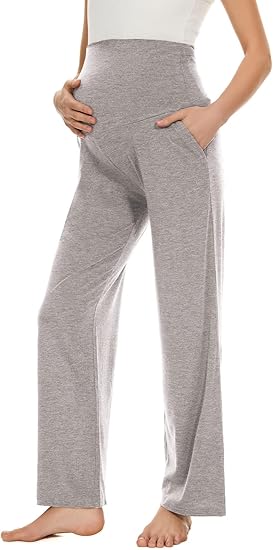 Women's Maternity Wide/Straight Versatile Comfy Palazzo Lounge Pants Stretch Pregnancy Trousers with Pockets