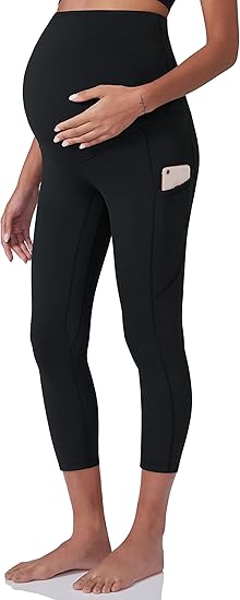 Women's Maternity Capri Leggings Over The Belly Pregnancy Workout Active Stretchy Pants with Pockets