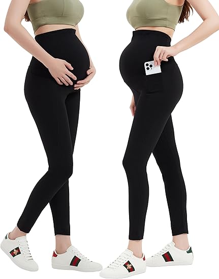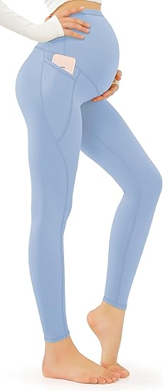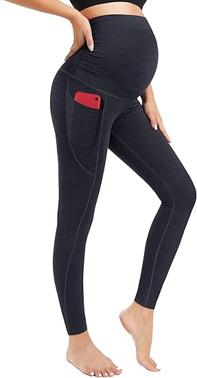 Smooth Feeling Maternity Leggings Over The Belly with Pockets Workout Pregnancy Leggings
