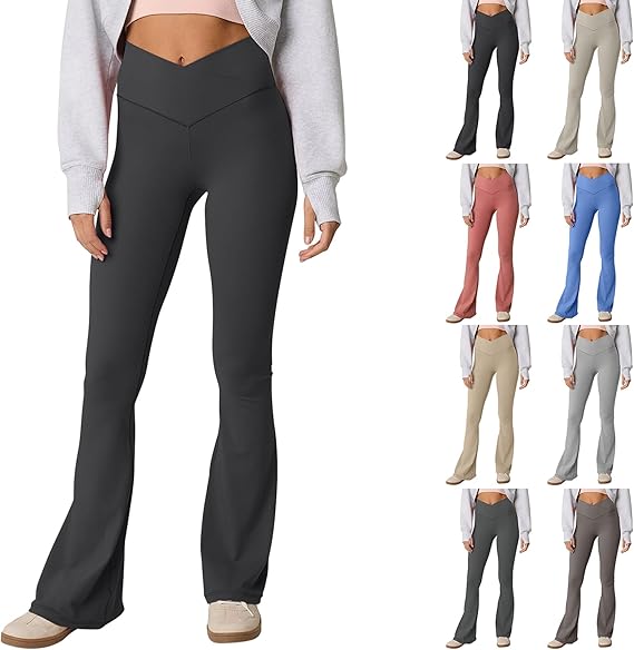 Women's Casual Bootleg Yoga Pants V Crossover High Waisted Flare Workout Pants Leggings