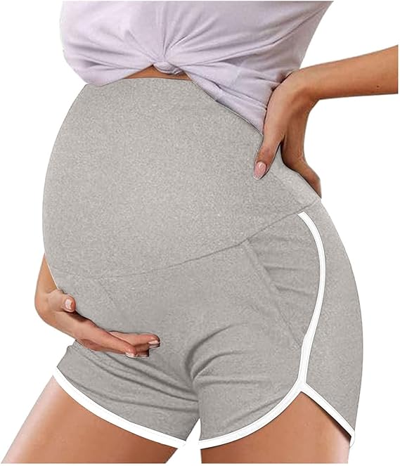 Womens Maternity Yoga Shorts Over The Belly Pregnancy Workout Athletic Running Biker Shorts Comfy Stretchy