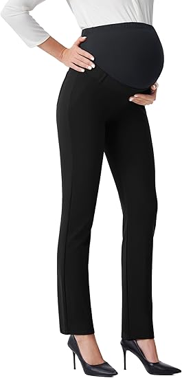 Maternity Pants for Work Over The Belly Straight Leg Dress Pants Strethy Pregnancy Office Casual Yoga Pants