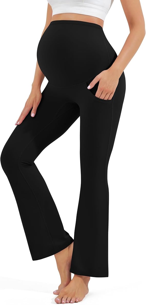 Women's Maternity Pants with Pockets Over The Belly Pregnancy Bootcut Yoga Pants for Work Casual