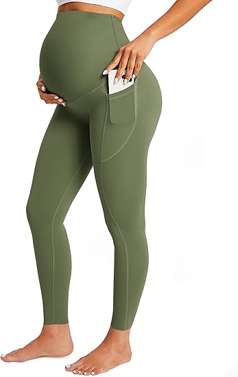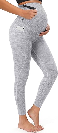 Soft Maternity Workout Leggings with Pockets Over The Belly Pregnancy Yoga Pants