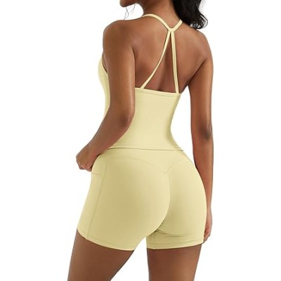 2 Piece Workout Sets for Women Padded Sports Bra Tank Booty Gym Shorts with Pockets