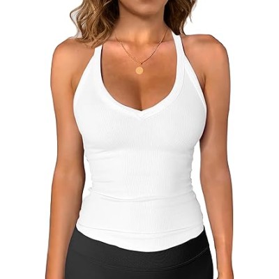 Workout Tops for Women Racerback Basic Tank Summer 2024 Camisole V Neck Slim Fit Ribbed Sleeveless