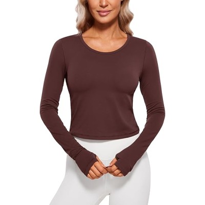 Long Sleeve Crop Tops for Women Workout Cropped T-Shirts Yoga Slim Fit Athletic Gym Shirts with Thumb Hole