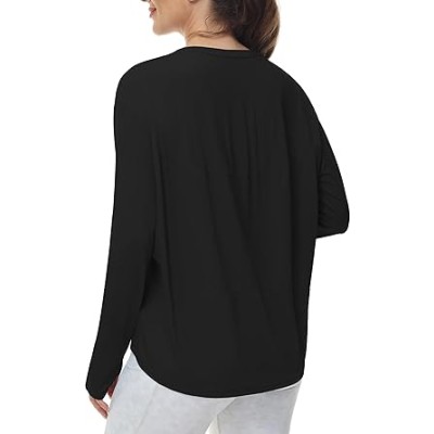 Women's Long Sleeve Workout Shirts Back Loose Fit Running Tee Tops with Thumb Hole