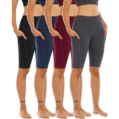 4 Pack Biker Yoga Shorts with Pockets for Women,High Waisted Athletic Running Workout Gym Shorts Tummy Control