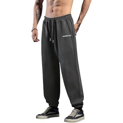Men's Cotton Joggers Sweatpants Loose Baggy Gym Workout Yoga Lounge Pants with Elastic Bottom Straight Leg