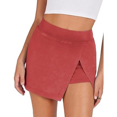 Women's Mini Skirt High Waist Casual Split Hem Black Skort Athletic Tennis Bodycon Skirts with Inner Shorts