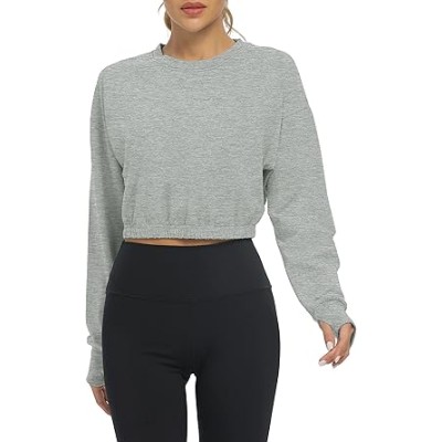 Long Sleeve Workout Shirts Athletic Gym Yoga Crop Tops for Women