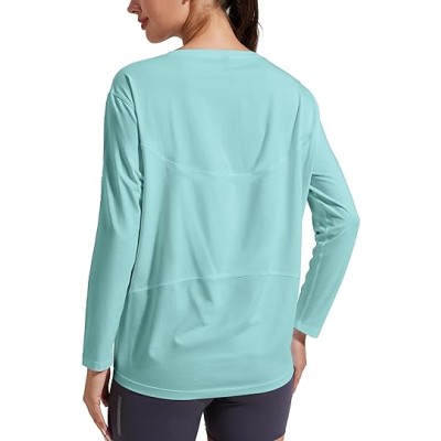 Bamboo Viscose Long Sleeve Workout Shirts for Women Back Loose Fit Yoga Athletic T-Shirts Casual Boat Neck Tops