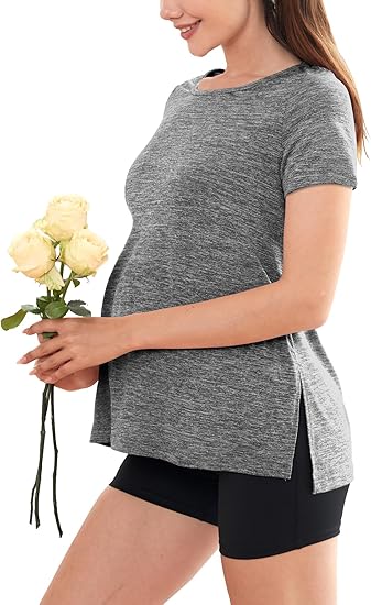 Women's Maternity T-Shirt Short Sleeve Split Side Pregnancy Tops Maternity Clothes