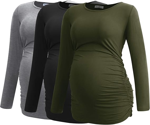 Women's Maternity Shirts Long Sleeve Pregnancy Clothes Tops 3-Pack