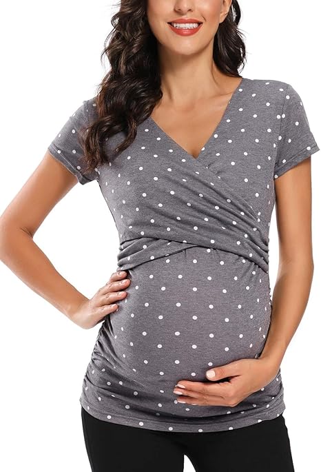 Women's Maternity Nursing Tops Short Sleeve V Neck Breastfeeding Tee Shirts Pregnancy Tops