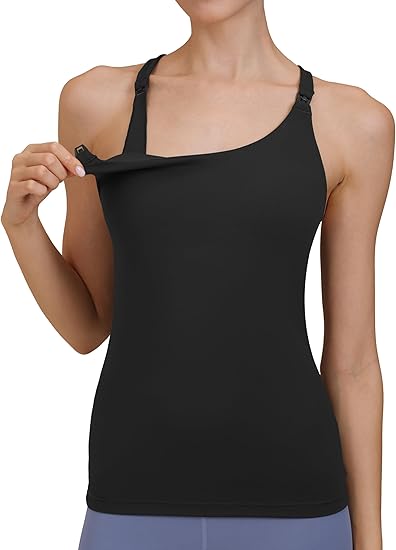 Nursing Tank Tops for Breastfeeding Y-Back Racerback Longline Maternity Sports Bra Workout Crop Top