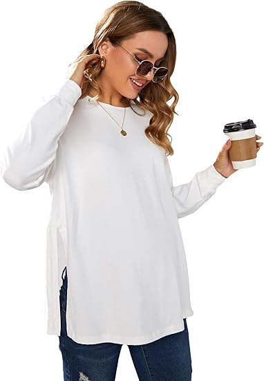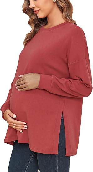 Women’s Maternity Shirts Long Sleeve Loose Fit Pregnancy Tops Split Side Casual Maternity Clothes