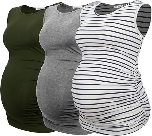 Women's Maternity Tank Tops Sleeveless Ruched Pregnancy Clothes 3-Pack