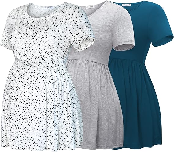 Maternity Tops Short Sleeve Scoop Neck Breastfeeding Shirt Pregnancy Clothes