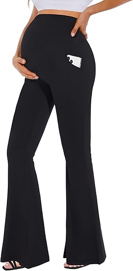 28" Buttery Soft Maternity Flare Leggings with Pockets High Waisted Bell Bottom for Yoga Casual