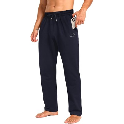 Men's Sweatpants Cotton Yoga Pants Casual Jersey Pants for Men Open Bottom Straight Leg with Zipper Pockets