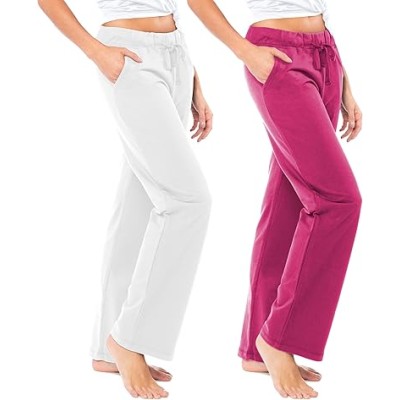 Women's 2 Pack Ultra Soft French Terry Cotton Drawstring Yoga Lounge Long Pants