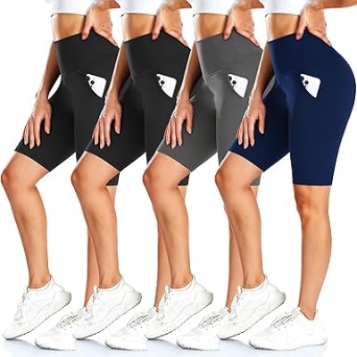4 Pack Biker Shorts for Women with Pockets – 8" High Waisted Tummy Control Workout Yoga Running Shorts