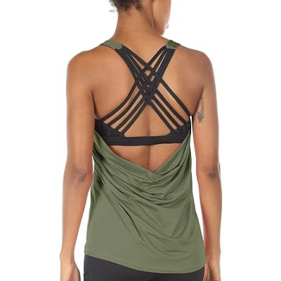 Women's Open Back Workout Athletic Yoga Tank Tops with Built in Bra