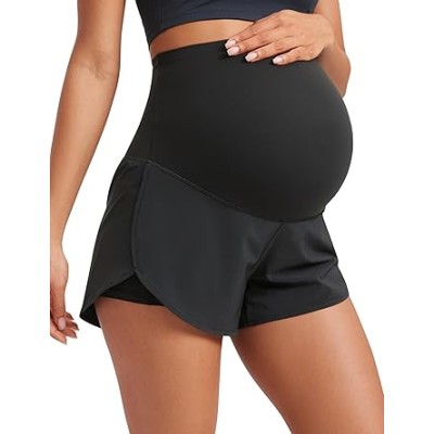 Women 2 in 1 Maternity Workout Shorts Over Belly 3" - Dolphin Soft Athletic Running Casual Pregnancy with Pockets