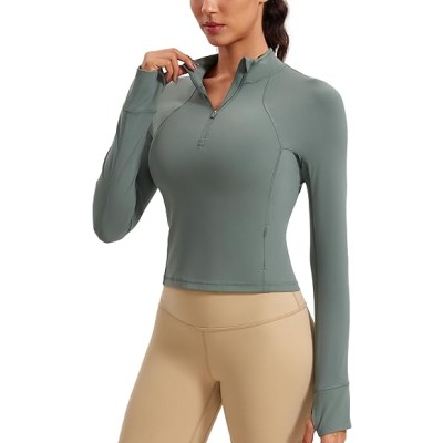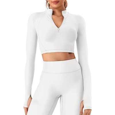 Women Zip Up Long Sleeve Workout Crop Top Mock Neck Yoga Shirt