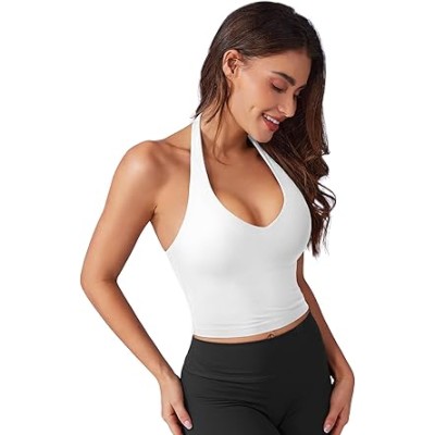 Women Halter Crop Top Padded V Neck Backless Sleeveless Workout Halter Tank Tops Going Out Yoga Gym Clothes