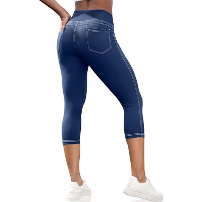 Capri Leggings for Women, High Waisted Yoga Pants with Back Pockets Crop Workout Capris Pants