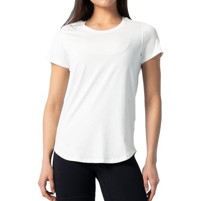 Women's Pima Cotton Short Sleeve Workout Shirt Athletic Yoga Tops Curved-Hem Crewneck T-Shirt