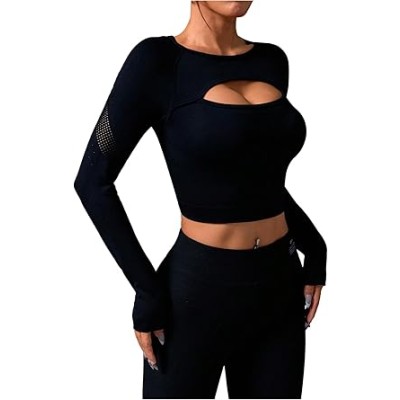 Women's Cut Out Long Sleeve Workout Shirt Stretchy Athletic Sports Yoga Crop Top