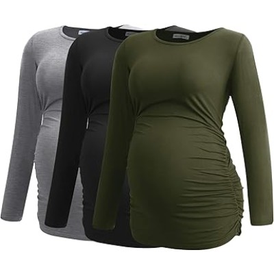 Women's Maternity Shirts Long Sleeve Pregnancy Clothes Tops 3-Pack