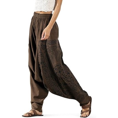 Women's Printed Harem Pants - Boho Yoga Baggy Pants with Elastic Waist & Drawstring, Hippie Lounge Pants